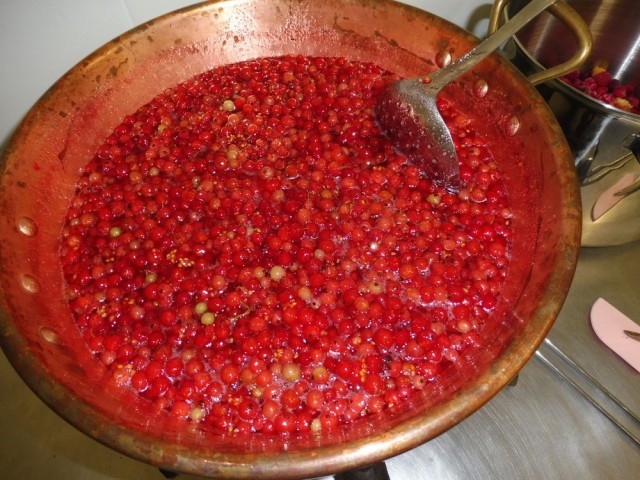 Une des classiques ! Juste des groseilles et du sucre dans une bassine en cuivre. Le taux de sucre et la texture peuvent variés au fil des préparations.