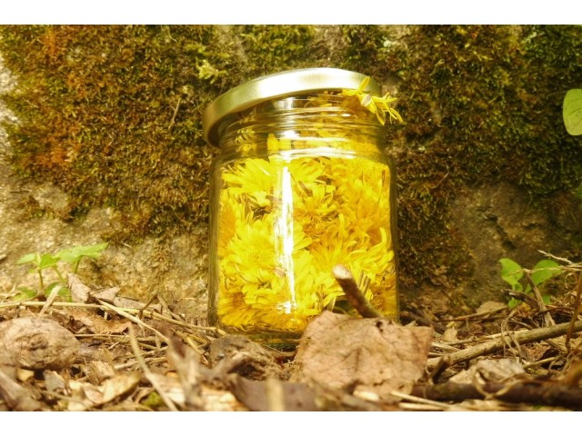 Nouvelle recette : cueillis dans le jardin, les fleurs de Pissenlits sont mises à cuire dans de l'eau froide avec un citron coupé en rondelle. Je laisse le tout reposer pendant 12 heures. Une fois filtré, cette infusion est mise à cuire dans une bassine en cuivre avec du sucre et de l'Agar-Agar.